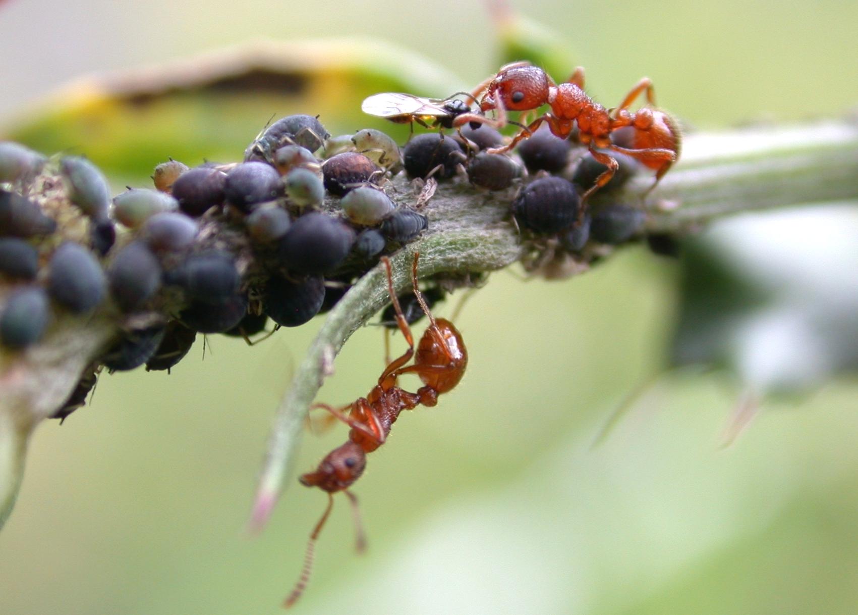 Myrorna mjölkar bladlössen på deras söta honungsdagg och skyddar dem också mot fiender. Men många fiender vet hur de ska krypa under radarn så att säga.