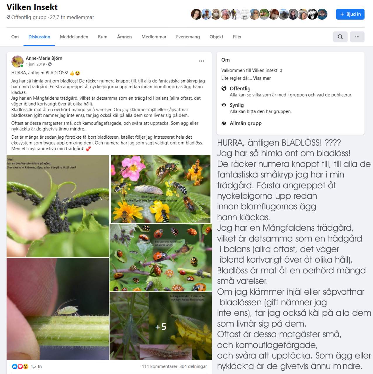 Det är många år sedan jag försökte få bort bladlössen, istället följer jag intresserat hela det ekosystem som byggs upp omkring dem. Och numera har jag som sagt väldigt ont om bladlöss. Men ett myllrande liv i min trädgård!